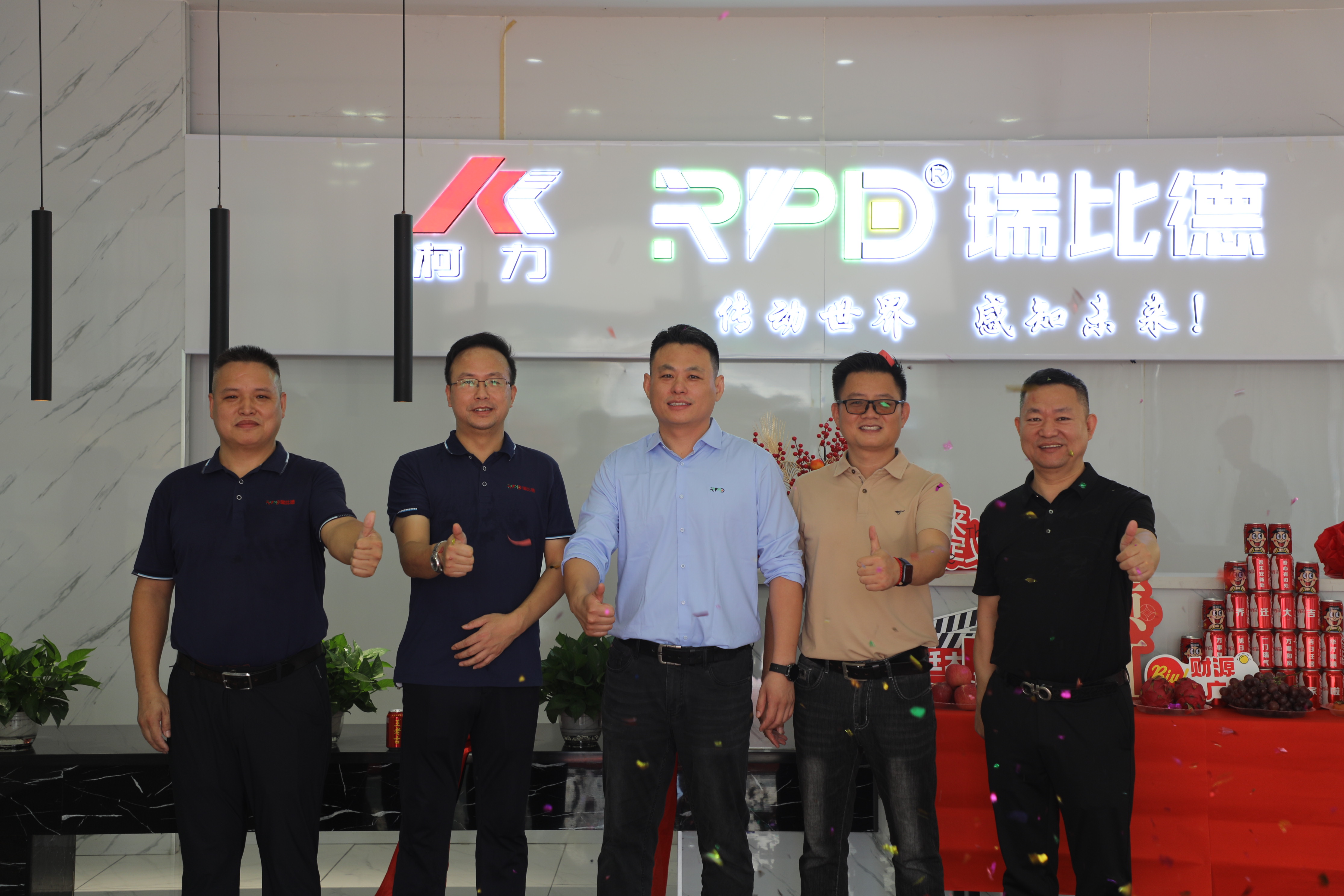 2025年8月8日8时8分8秒,在寓意"发发发发发"的良辰吉日,深圳瑞比德传感技术有限公司在东莞市虎门镇618智创园-瑞比德大楼前隆重举行新工厂大楼启用仪式。公司总经理赵晓辉、副总经理赵强、厂长陈总共同出席剪彩,标志着这家国家级专精特新企业正式开启发展新篇章。