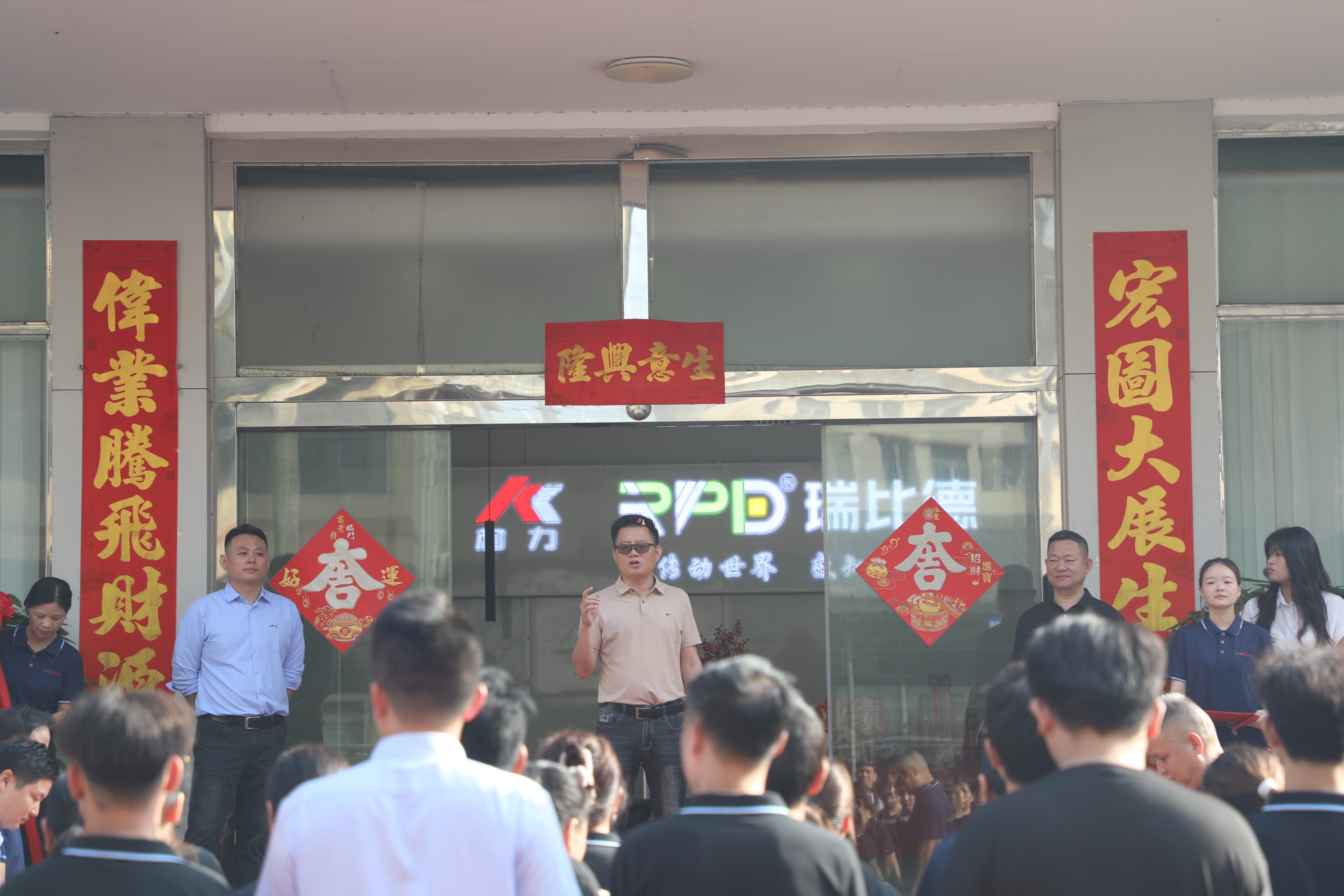 在寓意"发发发发发"的吉时,赵晓辉总经理携赵强副总、陈厂长共同执金剪剪彩,这也是对瑞比德团队精神的最好诠释。