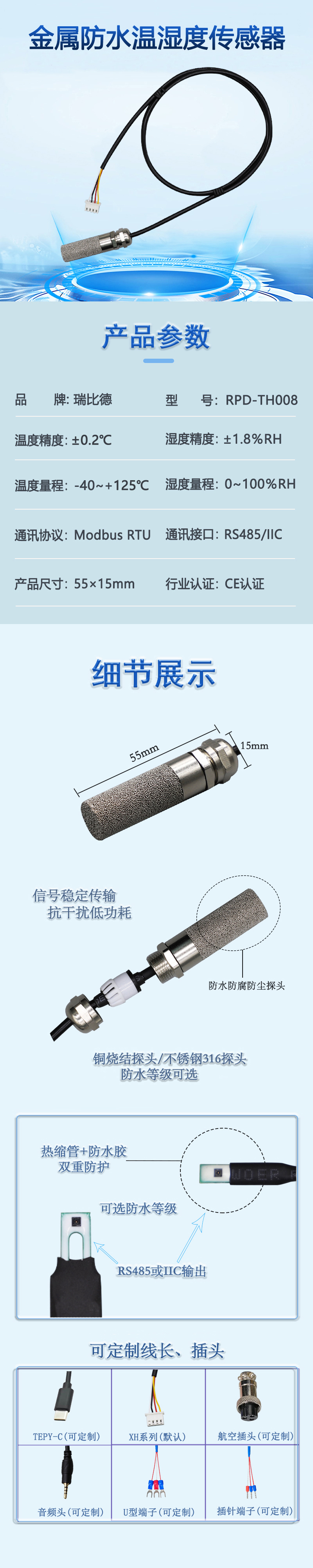 金属防水温湿度传感器是一种传感探头,其核心功能是感知环境的温度和湿度。它的最大特点是拥有一个金属材质的外壳,并具备高等级的防护能力,能够直接在恶劣的工业或室外环境中稳定工作。