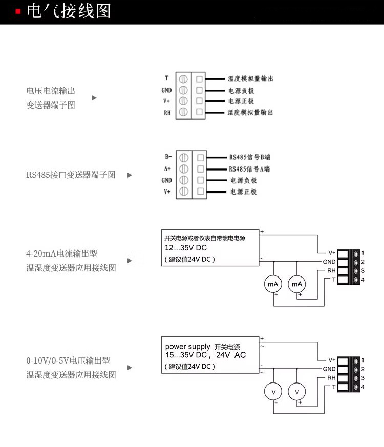 • 如果用于冷风管道(送风温度低于环境露点温度),务必选择带加热功能的型号,防止传感器结露损坏。