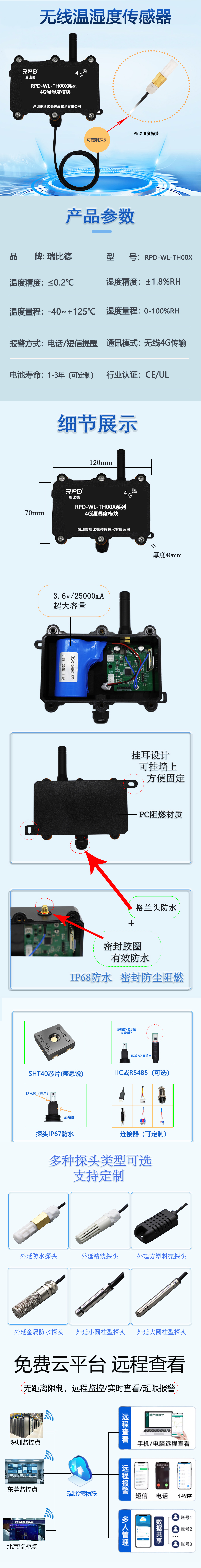 4G无线传输:采用4G Cat.1或NB-IoT通信模块,直接利用运营商网络将数据上传至云端平台,实现广域、无网关的远程监控。
